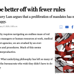 | "We Might Be Better Off With Fewer Rules” (interview with Barry Lam)